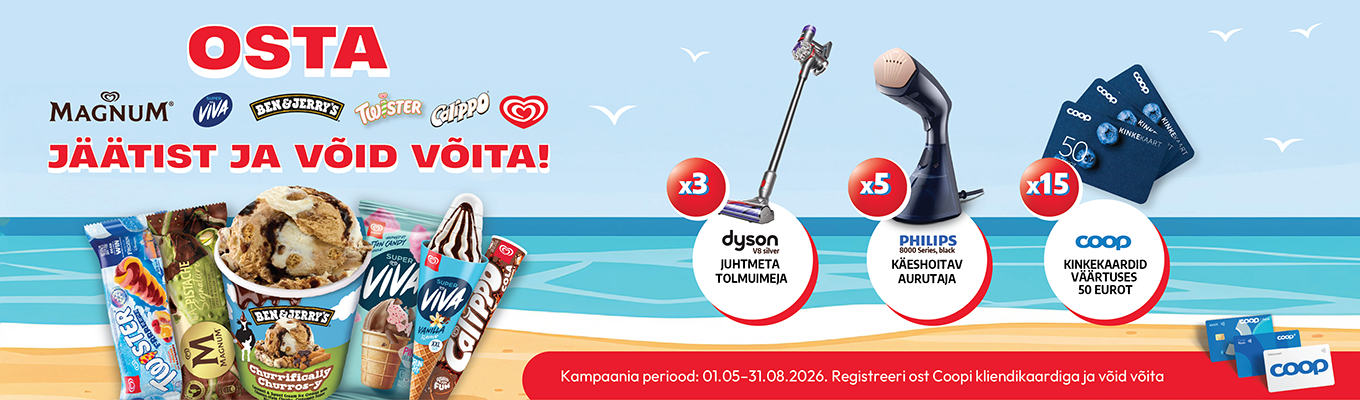 OSTA MAGNUM, SUPER VIVA, BEN & JERRY'S, TWISTER, CALIPPO, INGMAN JÄÄTIST JA VÕID VÕITA! COOP 2026