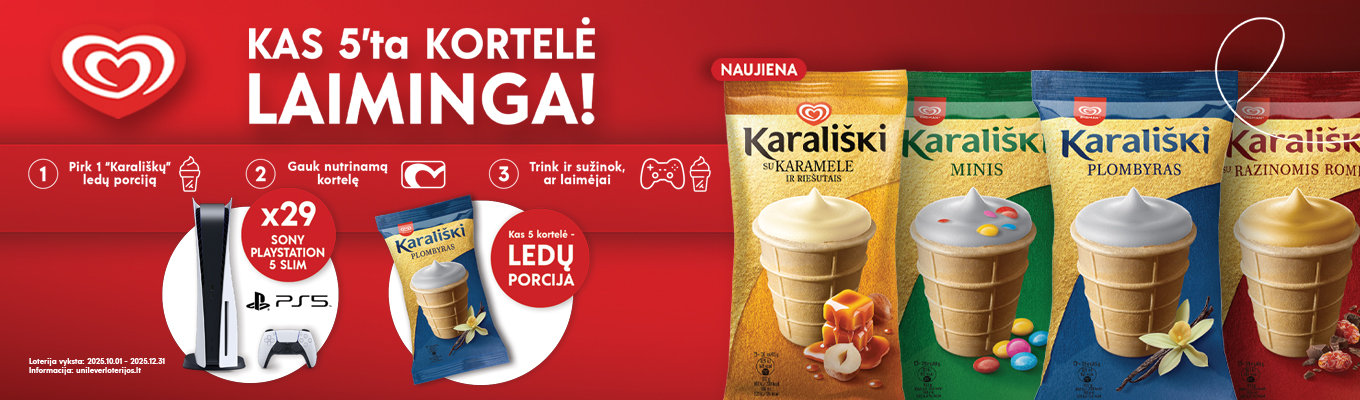 b. laimėjus pagrindinį prizą Playstation 5 Slim konsolę užregistruoti nutrinamos kortelės kodą kampanijos svetainėje www.unileverloterijos.lt